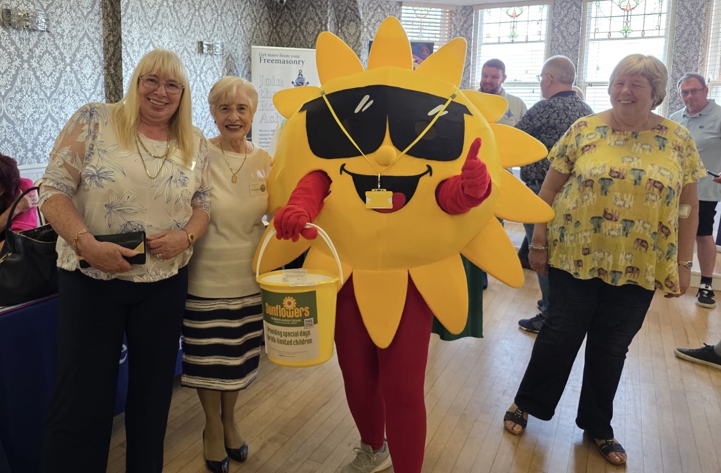 In the sunflower is Allison Rawling, a member of Lodge St Dorothea of the Order of Women Freemasons, who was doing a charity run but took a detour to the open day to see how things were going. She was running in support of the Sunflowers Children’s Action Group.