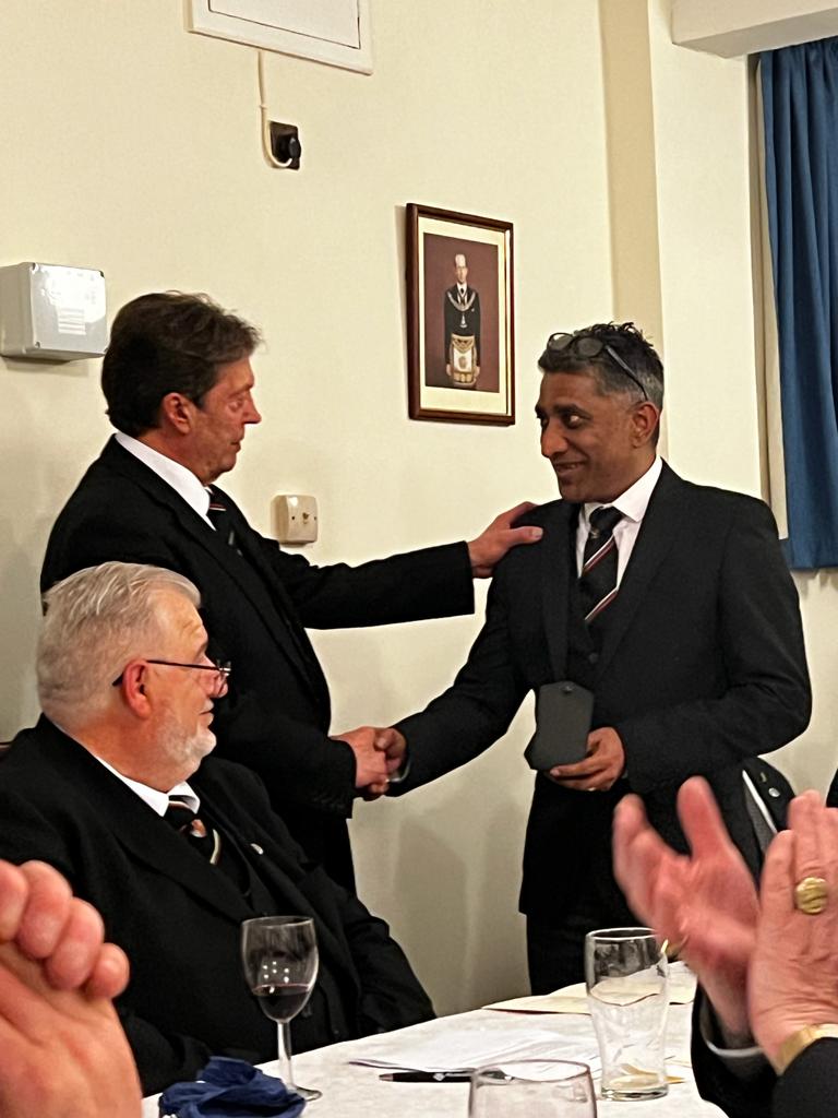 Shailen was never presented with his IPM jewel when he came out of the chair, and John Crutchley presented him with his overdue jewel at Festive Board.