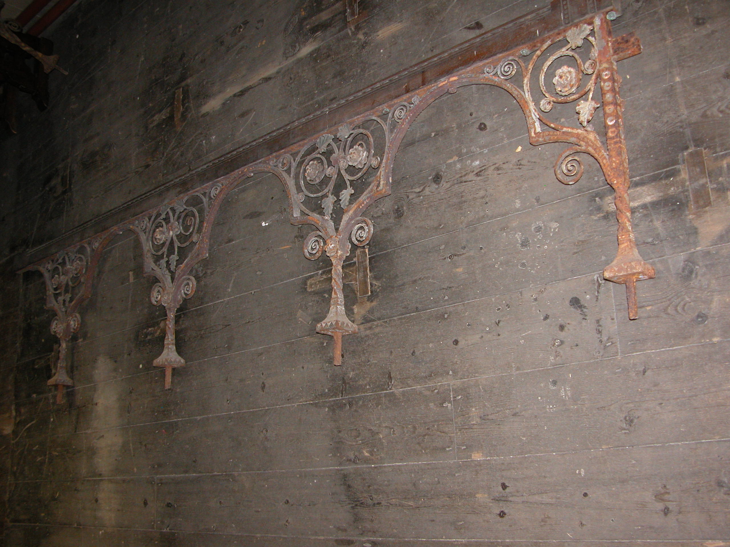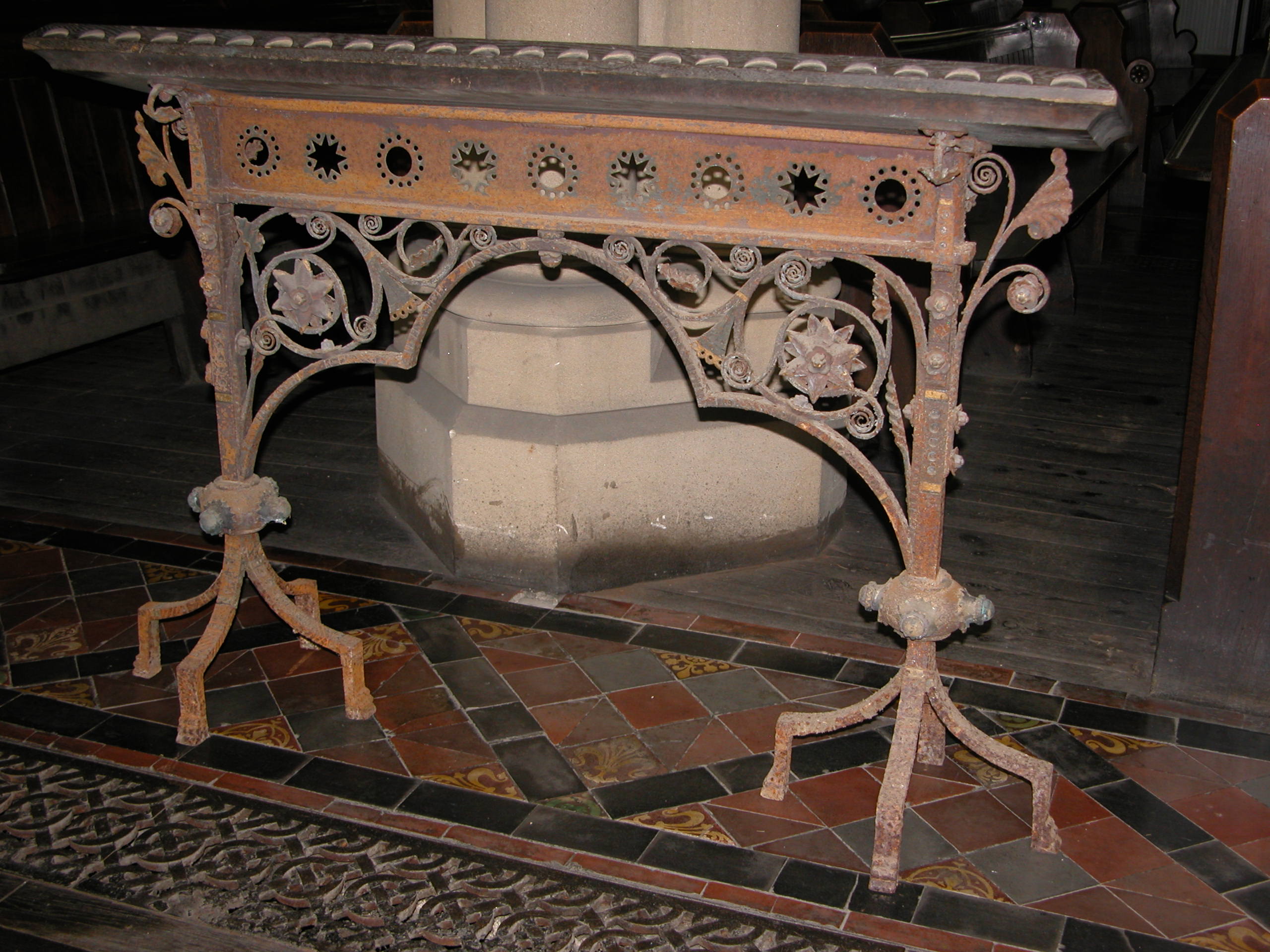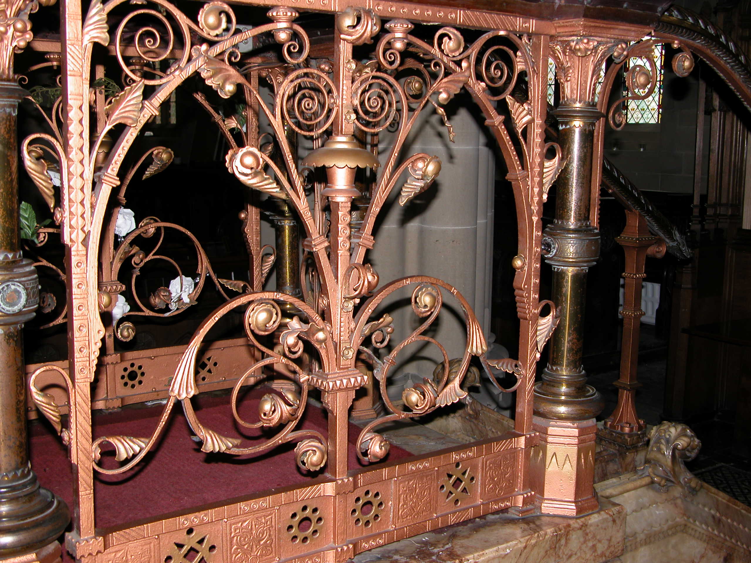 “The pulpit hand ail was also loose, and needed repairing and the alter rails and prayer desk had been painted black and kept in the crypt where they had rusted and deteriorated.