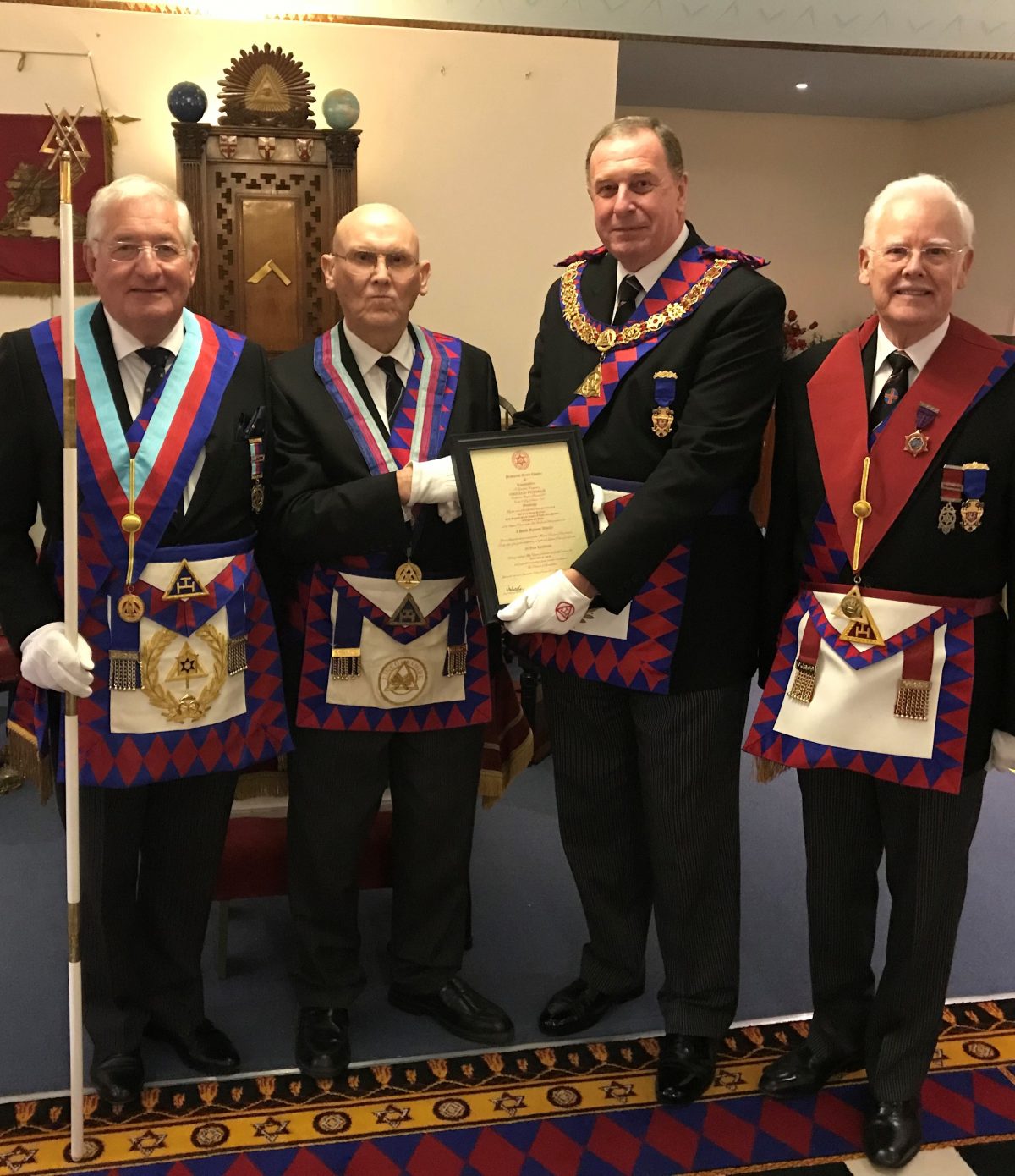 Excellent Companion Gerald Forman, who was initiated into the Ashlar Lodge in 1963 and then exalted into the Chapter of Concord on the 1st October 1968, received his 50-year Chapter certificate from the Grand Superintendent Dave Wheeler.
