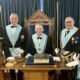 Masonic dignitaries including Dave Wheeler, with Lincolnshire Mayor Andrea Jenkyns and Trevor Mitchell.