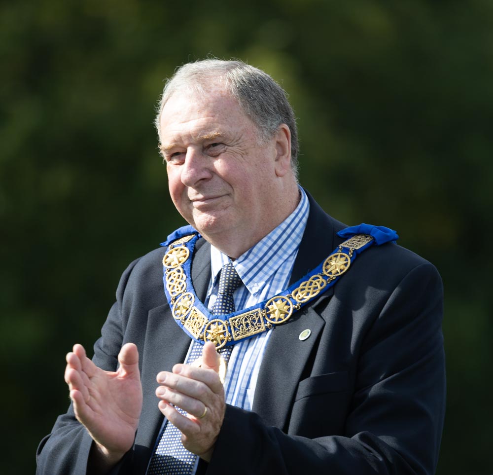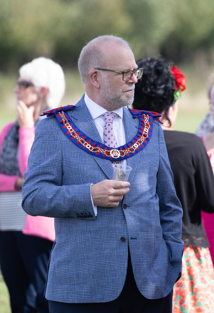 Masonic dignitaries including Dave Wheeler, with Lincolnshire Mayor Andrea Jenkyns and Trevor Mitchell.