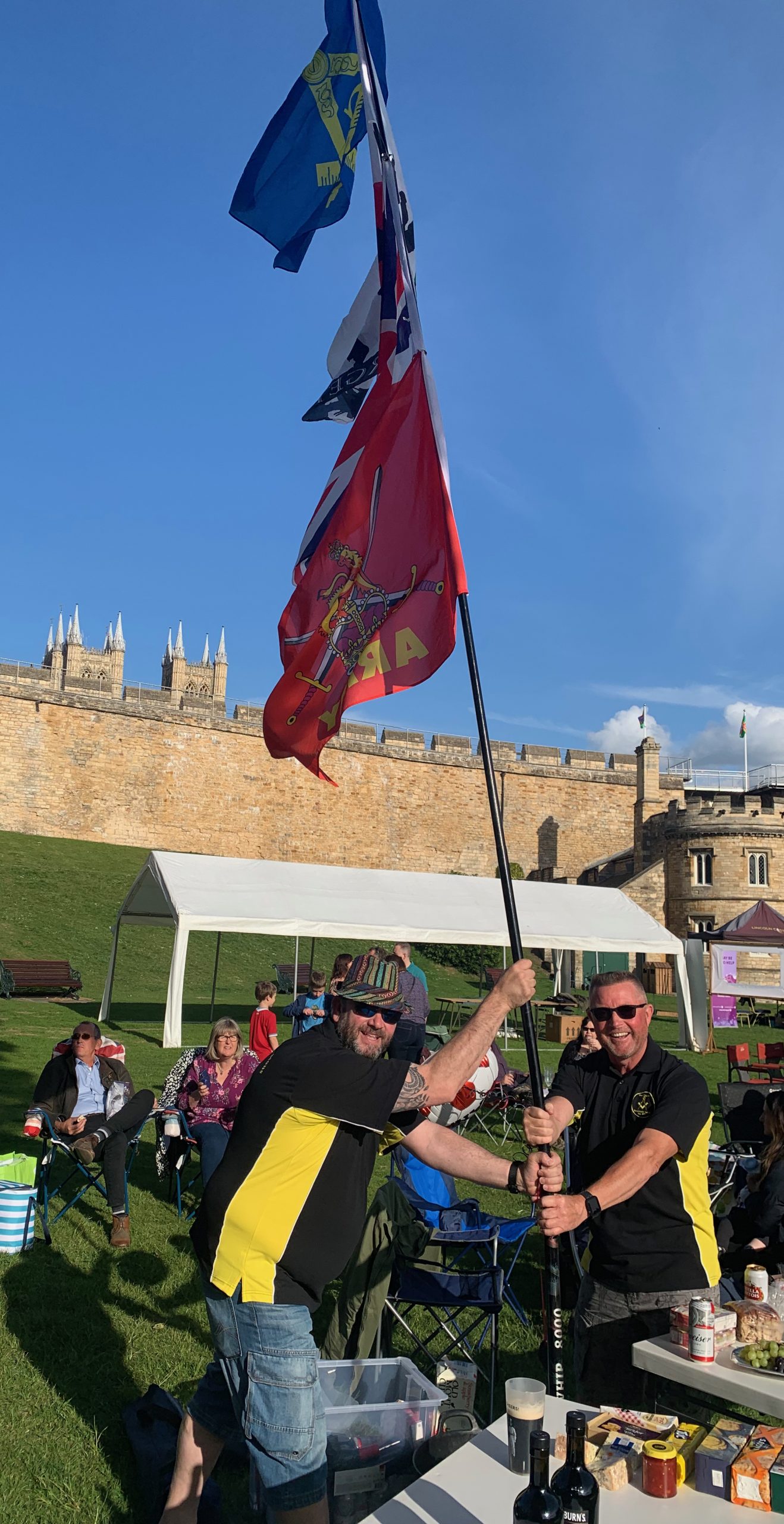 Picnics abounded, from the ‘standard sandwich’ variety to the much grander effort of Doric Lodge members from Grantham, who brought a candelabra-decked table, and the Free Wheelers’ massive spread, the scale of which drew this comment from a passer-by: “I know the event’s in a castle, but are you expecting a siege?”