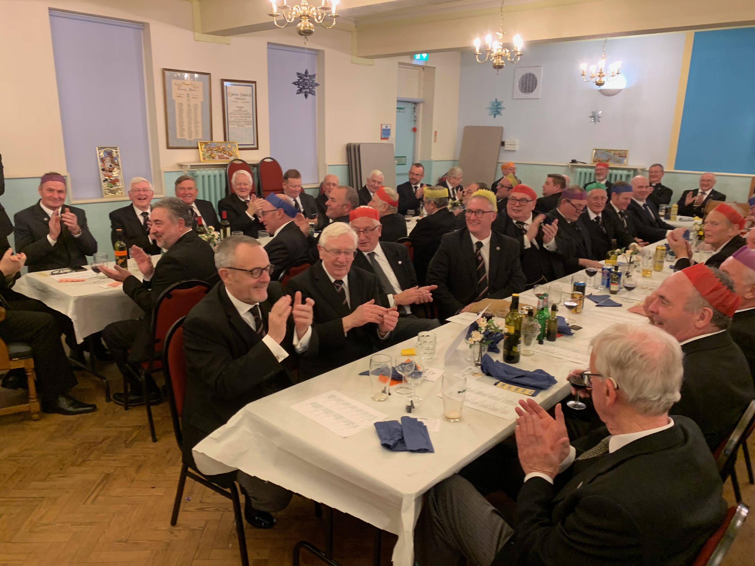 The St Lawrence meeting on the first Monday of December traditionally launches Christmas at the Scunthorpe centre, and was attended by sixty members from as far afield as Skegness, Lincoln, and Deeping near Peterborough. Judge the quality of the singing yourself at this link: IMG_5315 where Liaison Officer Paul Anyan from Yarborough Lodge in Gainsborough rounds off The 12 Days of Christmas.