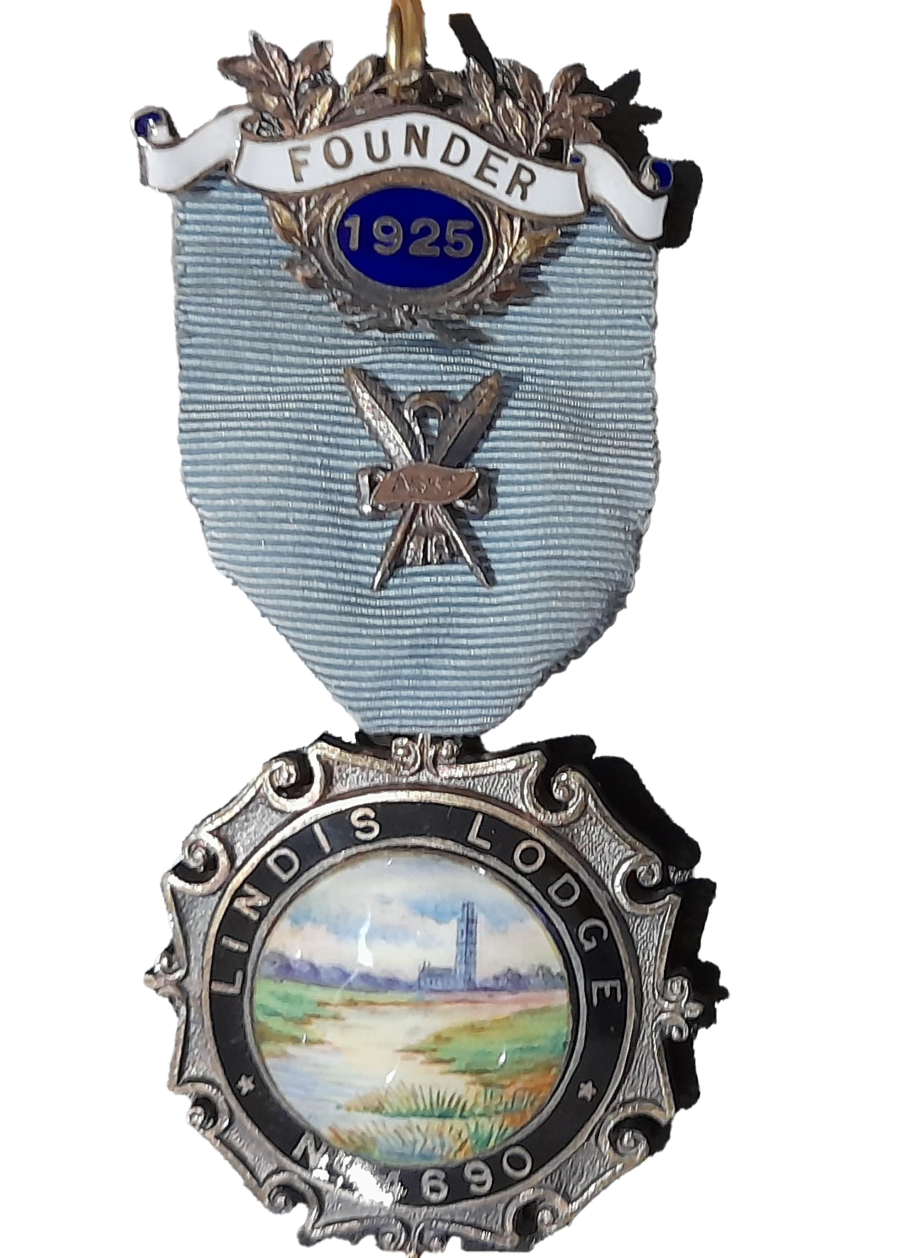 “At a recent visit to the Lodge of Merit in Stamford David Burton, Past APGM from Northants and Hunts, presented me with a Lindis Lodge founder’s jewel dated 1925. It had been given to David by W. Bro George Martin, who found it in his Lodge items, having had an uncle who was associated with a Lincolnshire Lodge. The jewel originally belonged to William Steel, a founder of Lindis Lodge.