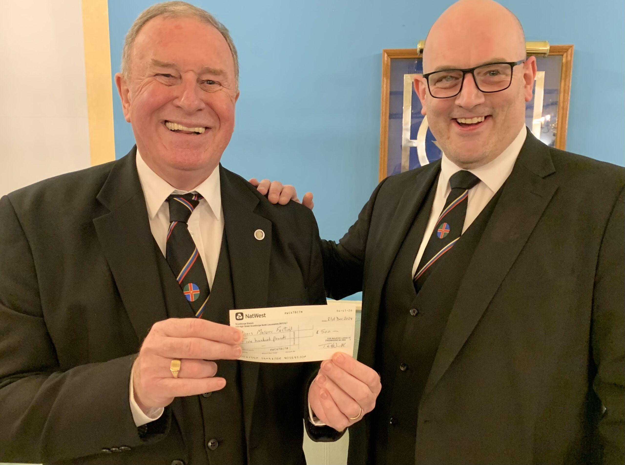 The Lodge also boosted the #2025 Festival with a £500 donation, which the PGM was pleased to accept. He said: “This is a wonderful donation, and will provide support to the MCF in its work in improving the quality of life for many people, including a significant number of our own members. We have already raised more than £2m of the £2.25m we set out to raise, in spite of the restrictions forced on us by the pandemic. By the time we reach the Festival finale on September 13th 2025, I have no doubt we shall reason to celebrate.”