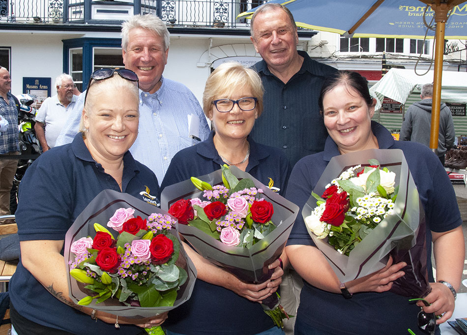 And the rest of the Larders Coffee House team including Angie, Hannah, and Bec, seen below with flowers given to them by programme co-ordinator Phil Odling, left, and PGM Dave Wheeler.